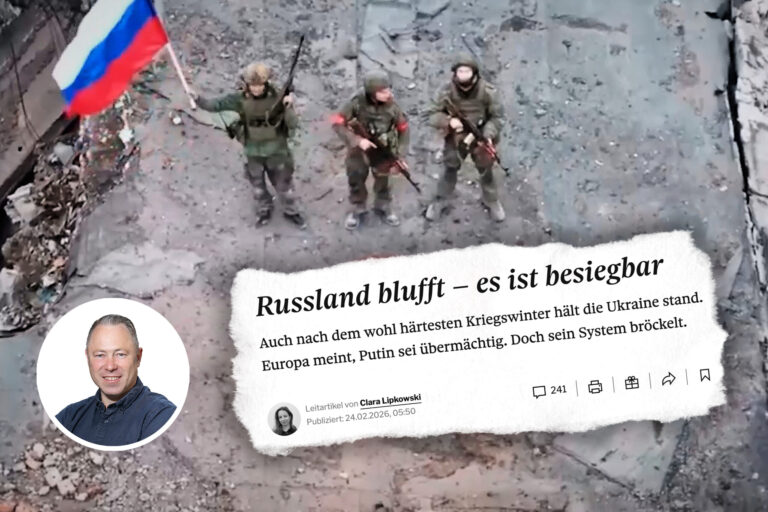 «Russland blufft – es ist besiegbar», schreibt der Tages-Anzeiger aus Zürich in einem Leitartikel. Verfasst hat ihn die deutsche Journalistin Clara Lipkowski, die für T-online und die Süddeutsche Zeitung tätig war. Noch immer hängt sie der fatalen und völlig realitätsfremden Siegstrategie an, die vorgaukelt, die Atommacht Russland könne im Ukraine-Krieg besiegt werden.