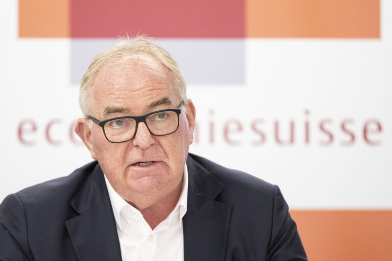 Christoph Maeder, Praesident economiesuisse informiert an einem Point de Presse ueber ihren Entscheid zum Vertragspaket Schweiz - EU, aufgenommen am Freitag, 11
