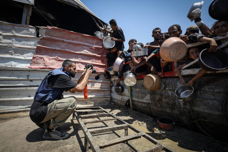 Journalists document daily struggles amid Gaza humanitarian crisis due to Israeli attacks GAZA CITY, GAZA - JULY 24: Anadolu freelance photojournalist Anas Zeyad Fteha documents the struggle of displaced Palestinians to access food, while often facing hunger himself as Anadolu freelance journalists continue their work under difficult conditions to shed light on the humanitarian impact of Israeli attacks on Gaza on July 24, 2025