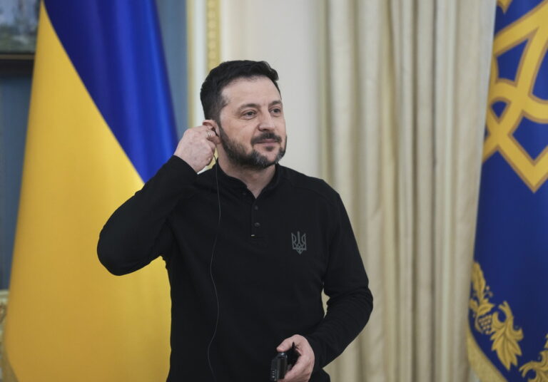 epa11995428 Ukrainian President Volodymyr Zelensky addresses a press conference in Kyiv, Ukraine, 28 March 2025