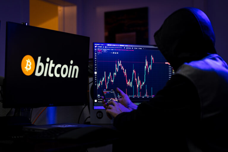 Bitcoin and charts for analysing cryptocurrency trends are pictured on a screen, on Monday, 24 November 2025, in the canton of Ticino