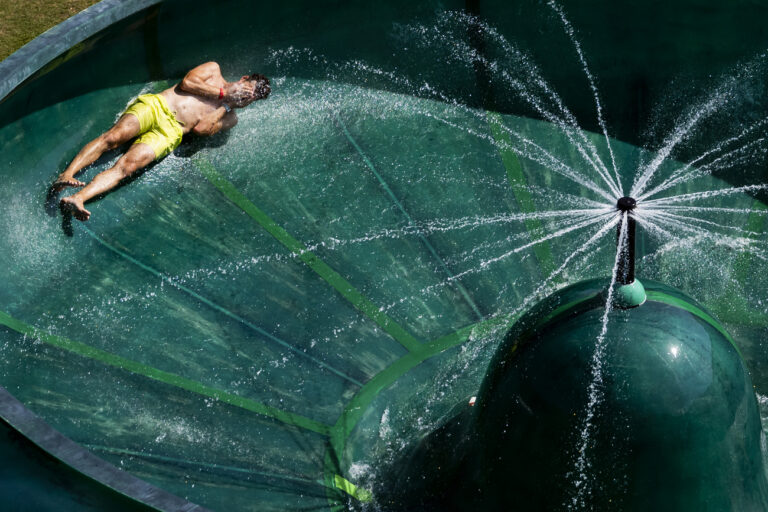 Une personne glisse dans un toboggan de le piscine du Lido lors d'une chaude journee d'ete le samedi 10 aout 2024 a Locarno