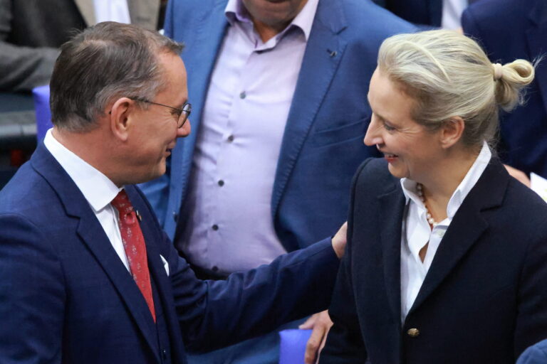 Die Alternative für Deutschland (AfD) liegt nun auch in einer neuen repräsentativen Yougov-Umfrage erstmals vor CDU und CSU. Wenn am kommenden Sonntag Bundestagswahl wäre, würden 27 Prozent der Befragten für die Oppositionspartei stimmen – zwei Prozentpunkte mehr als noch im August. Die Union verliert einen Punkt und kommt auf 26 Prozent.