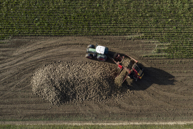 Sugar beets are harvested by means of a beet harvester, photographed in Wildegg, in the Canton of Aargau, Switzerland, on November 12, 2019