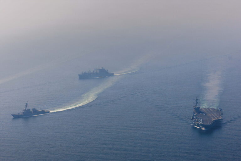 6. Februar 2026: Der Flugzeugträger «USS Abraham Lincoln» fährt im Arabischen Meer gemeinsam mit dem Zerstörer «USS Frank E. Petersen Jr.» und dem Versorgungsschiff «USNS Carl Brashear»