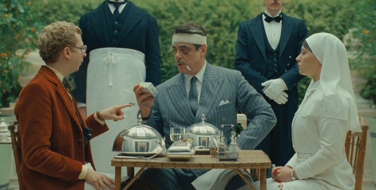 The Phoenician Scheme (USA 2025) von Wes Anderson. Mit Benicio del Toro, Mia Threapleton, Michael Cera, Tom Hanks, Bryan Cranston, Scarlett Johansson