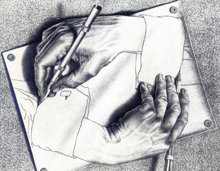 Mit einem Puzzle fängt alles an. Franz Escher bekommt es als Gag zu seinem 19. Geburtstag geschenkt. Motiv ist ein berühmtes Bild seines Namensvetters M. C. Escher, des Genies der optischen Täuschungen, auf dem sich zwei Hände gegenseitig zeichnen. Das Escher-Puzzle steht nicht nur am Beginn einer lebenslangen Sucht – Franz vergisst darob seine eigene Party und dass er eigentlich das Mädchen abschleppen wollte, das ihm das Puzzle mitgebracht hatte; es ist auch Sinnbild dafür, wie virtuos Wolf Haas seinen vertrackten Roman konstruiert. ...