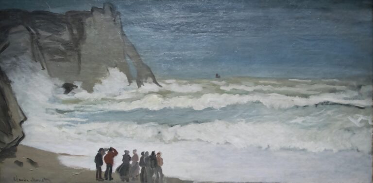 Claude Monet, Mer agitée à Étretat, 1883 – Es ist ein wenig in Verruf gekommen, das Meer, dieser flüssige Himmel. Man wirft ihm vor, dass es zu heiss geworden sei, zu verschmutzt und dass es in ihm zu wenig Fische geben würde. Das mag alles stimmen. Aber ungebrochen dennoch, für immer, ist seine Anziehungskraft, seine Anmut, seine glitzernde Schönheit und seine düstere Brutalität.