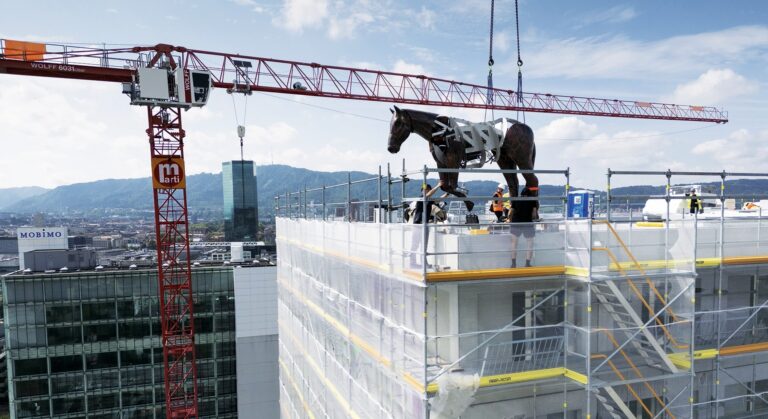 Illusion in Lebensgrösse: am Zürcher Escher-Wyss-Platz. KEYSTONE/GAETAN BALLY ...