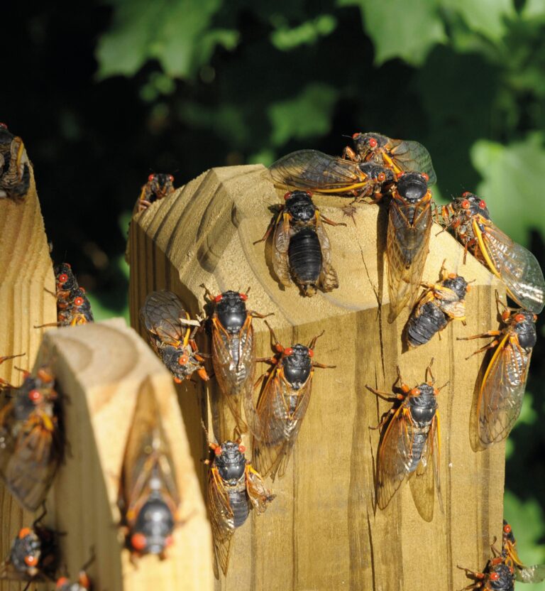 Die Insekten bilden, verteilt über die einzelnen Gliedstaaten, gigantische Populationen mit mehreren Milliarden Einzeltieren und einer eigenen Periodizität. Man bezeichnet die einzelnen Bruten entsprechend ihrer geografischen Heimat und dem zeitlichen Erscheinen mit römischen Ziffern. Die Bruten mit einem siebzehnjährigen Zyklus bevölkern die nordöstlichen Regionen der USA, die dreizehnjährigen den Südosten. Was nun in den jetzigen Frühjahrs- und Sommerwochen passiert, ereignete sich das letzte Mal im Jahr 1803: Die gigantische «Grosse Südliche Brut XIX» erschien das letzte Mal im Jahr 2011 und war nun nach dreizehn Jahren wieder fällig, während die «Nördliche Illinois Brut XIII» als siebzehnjährige nach 2007 ebenfalls an der Reihe war. Diese seltene Gleichzeitigkeit ist umso beeindruckender, als sich die beiden Verbreitungsgebiete zum Teil überlappen. Insgesamt dürften jetzt über eine Billion (mehr als das Hundertfache der Erdbevölkerung) Zikaden die Ohren und Nasen der Amerikaner strapazieren, denn die toten Zikaden verrotten am Boden zu einer übelriechenden Masse. Für die Flora ist die Zikadeninvasion indes kein Problem, denn die Tiere verursachen an den Pflanzen nur geringe Schäden und geben als Dünger den Wurzeln wieder zurück, was sie vorher als Larven im Boden konsumierten.