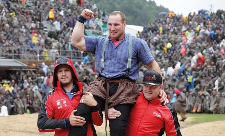 Am Schluss hatte auf gut 1000 Metern über Meer der wohl kompletteste Schwinger im Land die Nase vorn, der Innerschweizer Joel Wicki. Der amtierende Schwingerkönig und Top-Favorit fürs Eidgenössische Ende August in Mollis GL bezwang den Berner Matthias Aeschbacher im Schlussgang. In nur 45 Sekunden mit einem satten Wyberhaken! «Joel wollte diesen langersehnten Sieg. Mehr als sein Gegner, hatte ich das Gefühl», urteilte Dreifachkönig und SRF-Experte Jörg Abderhalden. Wicki strahlte nur so vor Freude: «Ich bin unheimlich stolz. Im Schlussgang wusste ich, dass ich alles geben musste. Ein ‹Gestellter› hätte mir nicht gereicht.» Er habe «im vierten Anlauf ein ganz grosses Ka ...