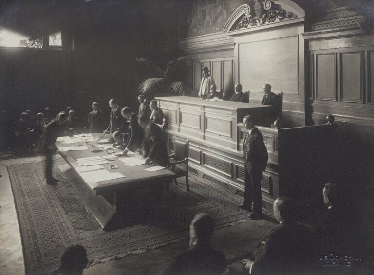 Als Möbelstück macht der Tisch eigentlich nicht viel her. Er ist nicht viel länger als ein grösserer Esstisch, aus hellem Holz geschreinert und mit einer Auflage aus rotem Saffianleder. Doch an diesem Tisch wurde Geschichte geschrieben, und noch achtzig Jahre nach dem denkwürdigen Ereignis sorgte er für bösen Zwist, der bis heute unter der Oberfläche schwelt.