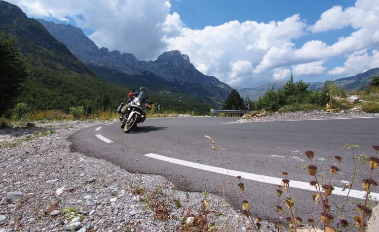 Wildnis, so weit das Auge reicht. Heiss ist es und anstrengend. Es ist unser letzter Reisetag. Wir kämpfen uns zu zweit auf der neuen Africa Twin durch den Theth-Nationalpark im Hinterland der nordalbanischen Stadt Shkodër. Die Landschaft wird schroffer, die Berge höher. Die höchsten Gipfel der albanischen Alpen erreichen hier knapp 2700 Meter und sind doch kaum bekannt. Vier Stunden Fahrzeit für achtzig Kilometer? Kein Problem in Albanien! Die unwegsame Gebirgspiste SH21 von Koplik über Theth und Kir nach Shkodër führt durch eine der wildesten Bergwelten Europas. Und fordert Töff und Besatzung alles ab. Jeder Zentimeter Bodenfreiheit und Federweg ist hier Gold wert. Aber auch die Asphaltstrassen sind eine Herausforderung. Meine Begleiterin Gabi meint, albanische Verkehrswege hätten die höchste Schlaglochdichte Europas. Ich denke: «Beste Bedingungen für jeden, der von einem Motorradabenteuer träumt.»
